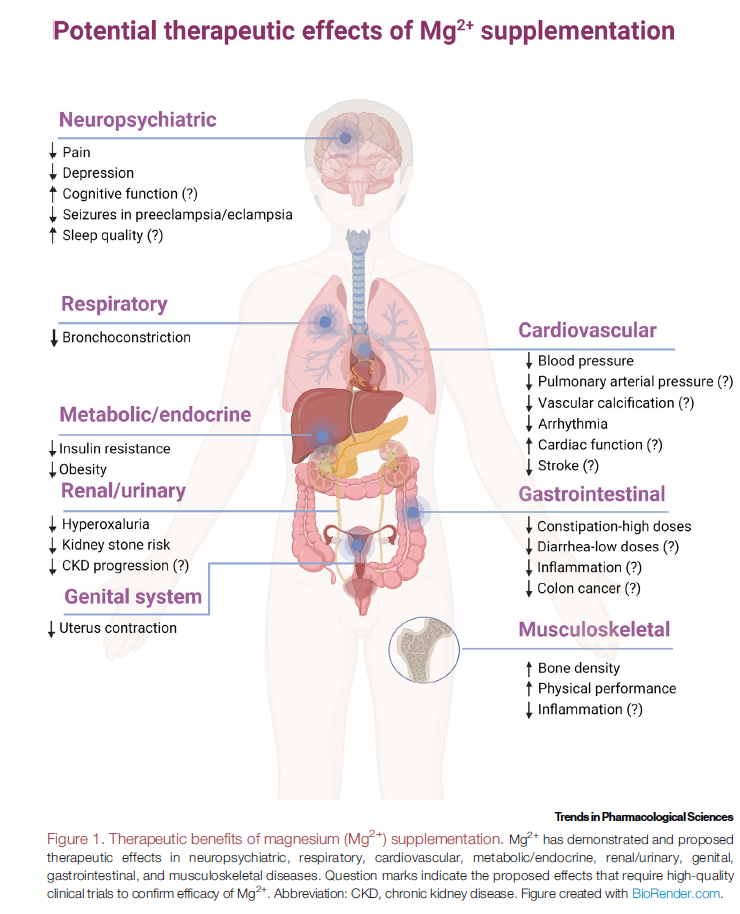 - Gao, Q., & Cil, O. (2024). Magnesium for disease treatment and prevention: Emerging mechanisms and opportunities. Trends in Pharmacological Sciences, 45(8), 708–722.